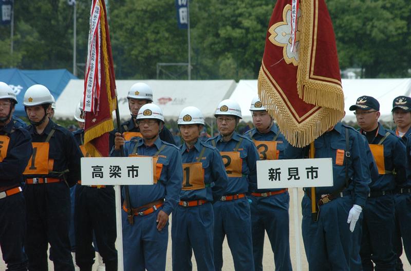 高梁市の代表として宇治消防団が整列